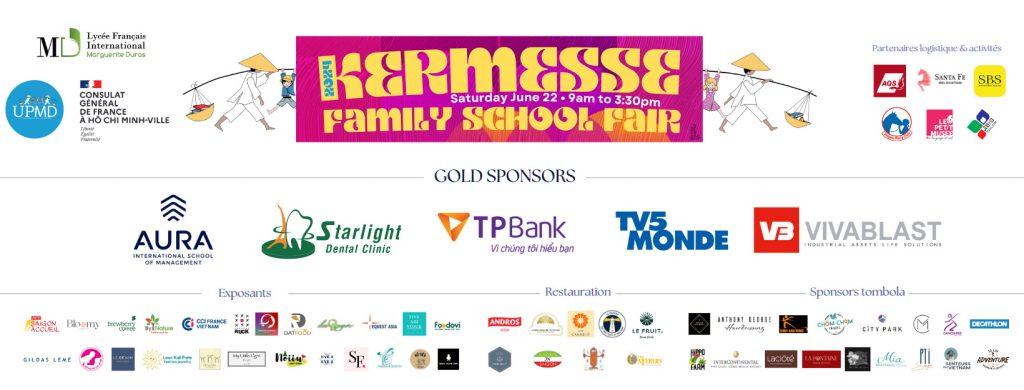 On the day of the Kermesse School Fair – June 22 – in addition to the activities of games, raffle, catering, music at school, there is also the possibility for children to organize a garage sale to sell and empty their cupboards before summer. Space/table for rent: 100,000VND.