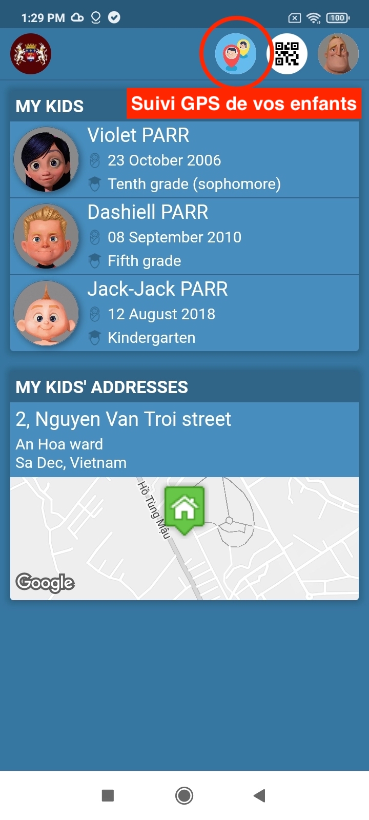 Xin nhắc lại, ứng dụng Xebus Parent cho phép bạn theo dõi con mình trong suốt hành trình đi xe buýt đến trường của chúng chỉ với một cú nhấp chuột (xem màn hình 1 và màn hình 2).