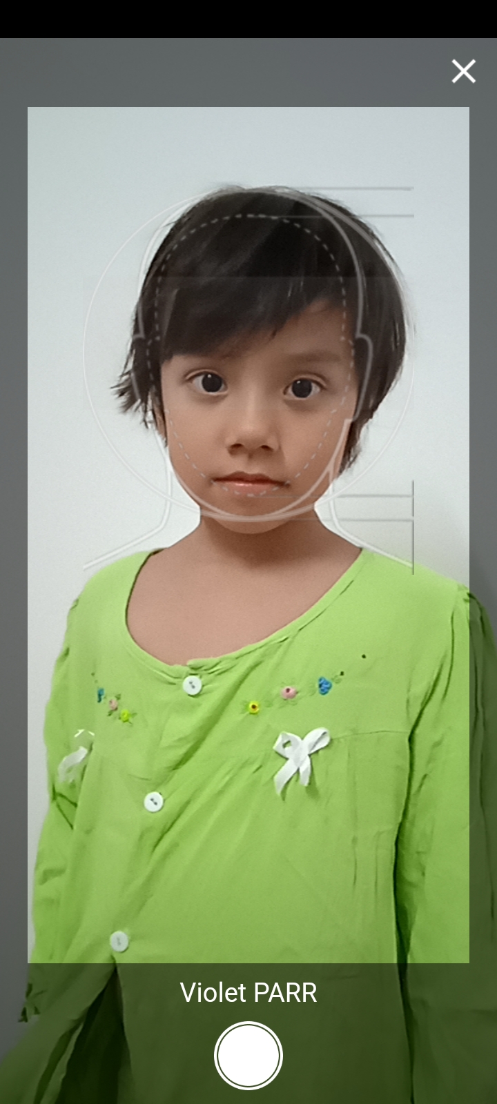- Place your child’s back 50 cm away from a well-lit wall with a solid background (preferably white). Stand 1.50 m away from your child. The application displays a visual marker to frame your child’s head (see screen 6). And there you have it, photo!